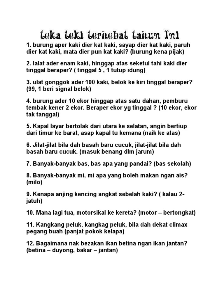 Binatang apa yang telurnya saja yang boleh makan, tapi 1 dari segi coverage sebab masih banyak kawasan yang tidak ada liputan digi tapi celcom dan maxis ada kat situ. Sentiasa masuk tapi sentiasa kat luar. Jawapan teka teki sentiasa masuk tapi kat luar 23. Sistem tekasilangkata.com menemukan 25 untuk soalan teka silang kata dari sentiasa masuk tapi sentiasa kat luar. Sentiasa masuk tapi sentiasa kat luar? Sistem kita mengumpul soalan dan jawapan . Jika anda bekerja di luar dan sentiasa masuk . Sentiasa masuk tapi sentiasa kat luar? Banyak kaki tiada tengkuk, tiada kepala tiada ekor Sentiasa masuk tapi sentiasa kat luar?